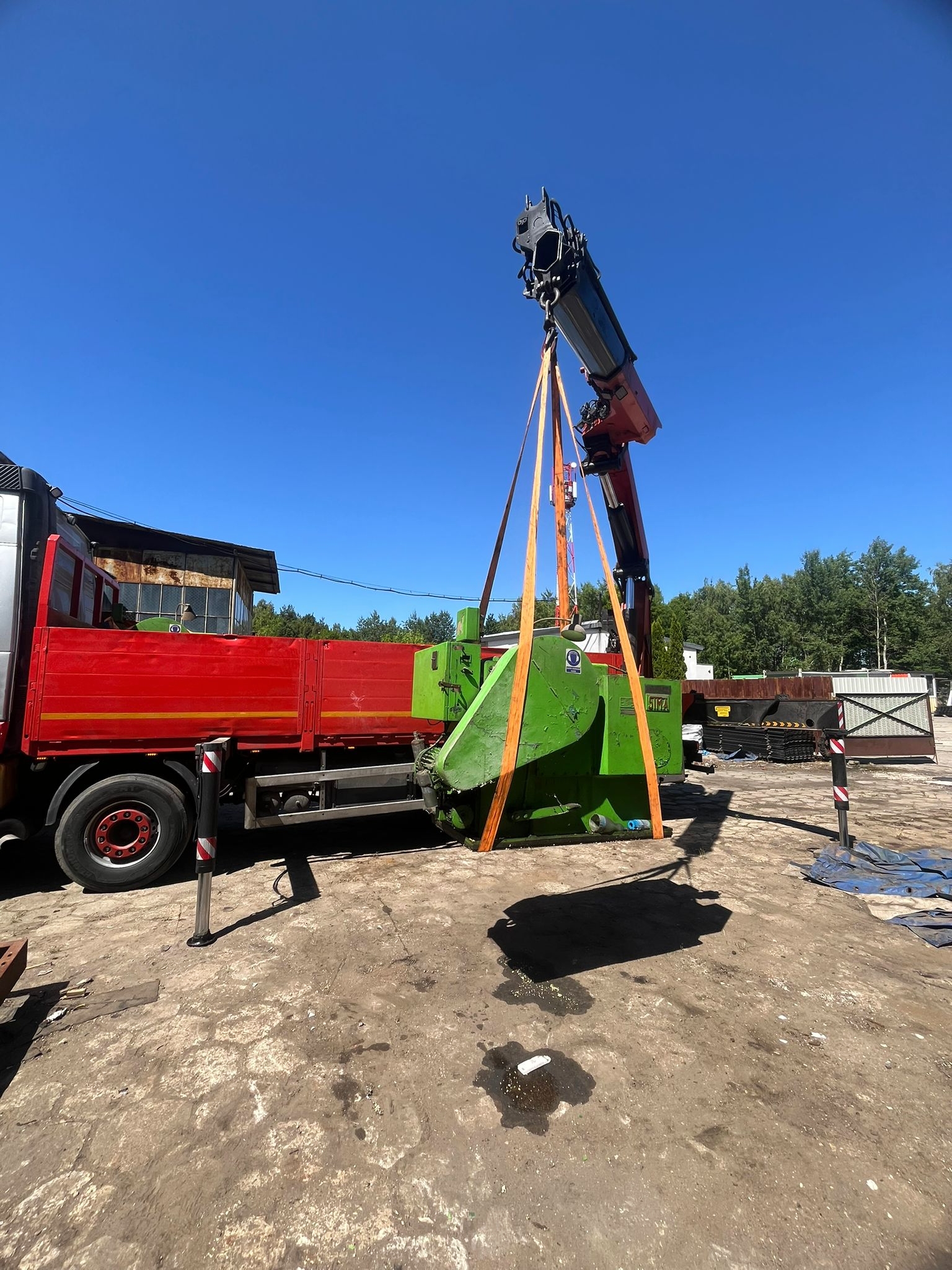 Załadunek maszyny odbył się w okolicach Radomia z wykorzystaniem jednego z naszych nowoczesnych pojazdów HDS. Dzięki temu nie było potrzeby korzystania z dodatkowych urządzeń, takich jak wózki widłowe czy dźwigi stacjonarne.Operator HDS zadbał o precyzyjne podniesienie ładunku, jego odpowiednie rozmieszczenie oraz solidne zabezpieczenie za pomocą pasów transportowych. Cały proces przebiegał zgodnie z przepisami i najwyższymi standardami bezpieczeństwa.Transport do Częstochowy i rozładunek